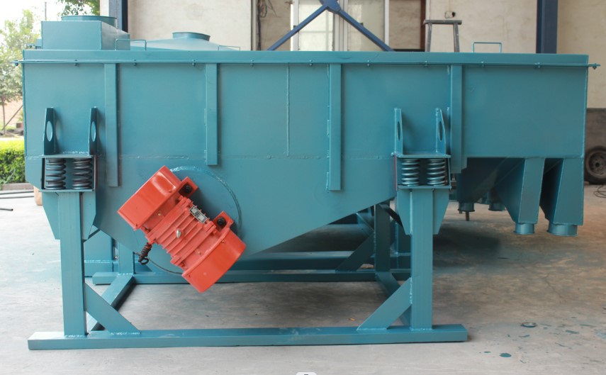 直線振動篩是振動篩的一種,主要是利用振動電機激振作為振動源,使物料在篩網上被拋起,同時向前作直線運動,物料從給料機均勻地進入篩分機的進料口,兩電機同步反向旋轉使激振器產生反向激振力,迫使篩體帶動直線振動篩篩網做縱向運動,使其上的物料受激振力而周期性向前拋出一個射程,從而完成物料篩分作業。